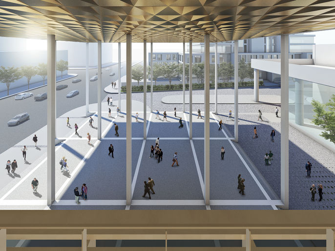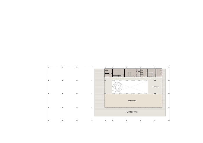 The new design is considered using the existing foundation. The building consists of a meeting area, seminar rooms, shops, exhibition hall, and café. All of which will be under one Floating roof that has a special geometry to reflect user activities down below for more dynamic feel. Support programs have been layout to one side; leave the other free for public use. The project will bring life to the street and encourage staff and visitor to spend more time outside. The goal aims to improve both user health and mentally, and building in term of energy sustainably.